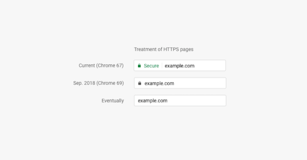 Emily Schechter ผู้จัดการผลิตภัณฑ์ของ Chrome Security ระบุว่า สาเหตุที่บริษัททำการปรับเปลี่ยนสัญลักษณ์ใหม่นั้น เนื่องจากทราฟฟิกบน Chrome ส่วนใหญ่ตอนนี้เป็น HTTPS เกือบทั้งหมดแล้ว จึงไม่มีความจำเป็นต้องดึงความสนใจของผู้ใช้ด้วยสัญลักษณ์คำว่า “Secure” อีกต่อไป ในทางตรงกันข้าม Chrome จะเน้นการแจ้งเตือนผู้ใช้เมื่อเข้าถึงเว็บไซต์ HTTP ที่ไม่มั่นคงปลอดภัยมากขึ้น กล่าวคือ Chrome จะแสดงสัญลักษณ์คำว่า “Not Secure” พร้อมเครื่องหมายตกใจบนทุกเว็บ HTTP แทน โดยเริ่มตั้งแต่ Chrome 68 ที่จะเปิดให้ใช้งานในเดือนกรกฎาคมนี้